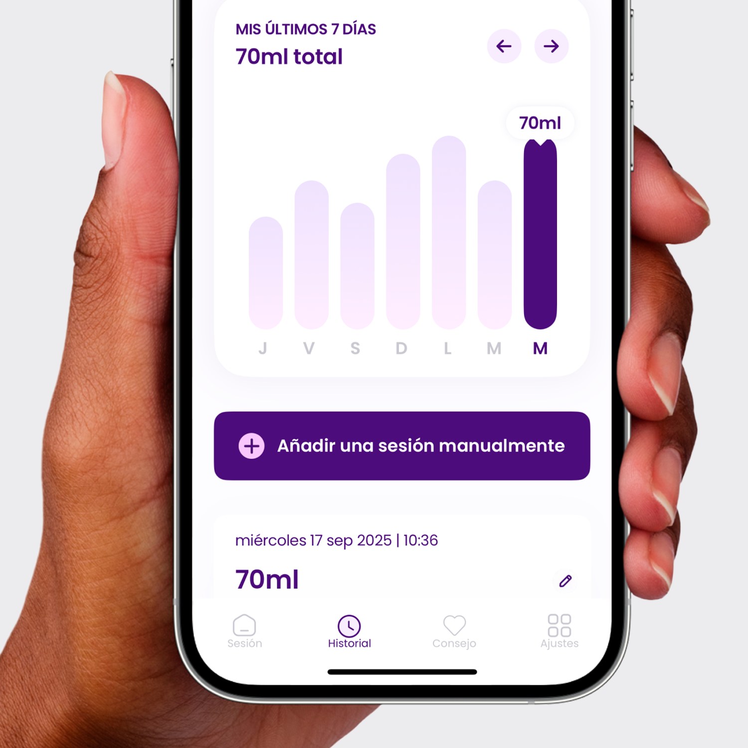 Controla tu producción de leche y evita las bajadas de lactancia con un historial detallado de las sesiones.