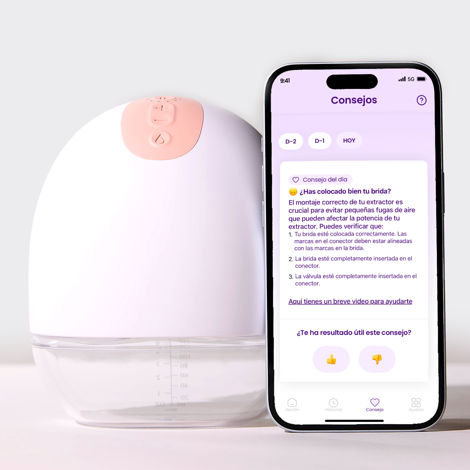 Dispone de un potente motor, tecnología exclusiva de cancelación de ruido, detección automática del nivel de leche y conectividad Bluetooth para seguir, controlar y optimizar el extractor de leche desde la aplicación gratuita.
